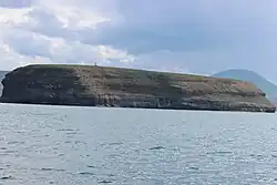 Lundey (Icelandic: [ˈlʏntˌeiː] ⓘ, "Puffin Island") is a small, uninhabited island in Skjálfandi bay located about 8.3 kilometres (5.2 miles) from Húsavík, in northern Iceland. It is the smaller of two islands in the bay, the other being Flatey. Lundey is about 300 metres (980 ft) long and 150 metres (490 ft) wide. Its highest point lies about 34 metres (112 ft) above sea level.[1] Its name in Icelandic means "Puffin"; over 200,000 Atlantic Puffin breed on the island's cliffs in the summer hence its name. The island lies only 50 kilometres (31 mi) south of the Arctic Circle and therefore experiences 24 hours of daylight during the summer solstice.