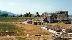 A theatre and an amphitheatre may still be distinguished on the site. No Etruscan remains have come to light. Cuntz's investigations[16] seem to lead to the conclusion that an ancient road crossed the Apennines from it, following the line of the modern road (more or less that of the modern railway from Sarzana to Parma), and dividing near Pontremoli, one branch going to Borgotaro, Veleia and Placentia, and the other over the Cisa pass to Forum Novum (Fornovo) and Parma.