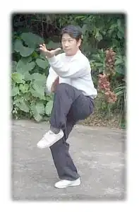 ![]() Luo Dexiu coming out of a turn in Xiantian Swallow Form of Baguazhang. | |