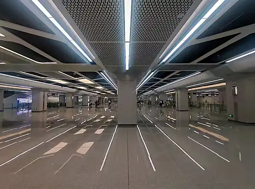 Luohu North station (Chinese: 罗湖北站; pinyin: Luóhú Běi Zhàn; Jyutping: lo4 wu4 bak1 zaam6) is a station of Shenzhen Metro Line 14. It opened on 28 October 2022.[1][2][3] It is part of the Luohu North transport hub integrated with the under construction Luohu North railway station which is part of the Shenzhen–Shanwei high-speed railway.[4]