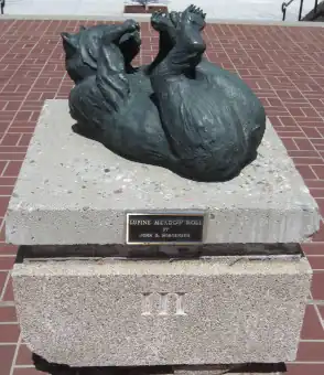 Lupine Meadow Roll is a 1990 bronze sculpture by John B. Mortensen, installed in Salt Lake City's Triad Center in the U.S. state of Utah. The bear sculpture measures approximately 1 ft. x 8 in. x 2 ft. and rests on a concrete base which measures approximately 2 x 2 x 2 ft. According to the Smithsonian Institution, which surveyed the artwork as part of its "Save Outdoor Sculpture!" program in 1993, this cast is the ninth of twenty.[1]