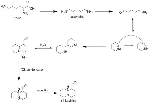 - ^ a b Golebiewski, W. Marek; Spenser, Ian D. (1985-10-01). "Biosynthesis of the lupine alkaloids. I. Lupinine". Canadian Journal of Chemistry. 63 (10): 2707–2718. Bibcode:1985CaJCh..63.2707G. doi:10.1139/v85-450. ISSN 0008-4042.