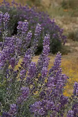 Lupinus excubitus is a species of lupine known as the grape soda lupine. Its common name refers to its sweet scent, which is said to be very reminiscent of grape soda. This species and its variants are found in Southwestern United States, especially in California and Nevada, e.g., Death Valley and Joshua Tree National Parks, and northwestern Mexico.[1][2][3][4]