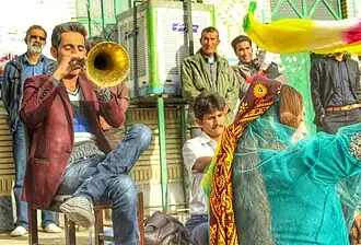 The most popular Luri musical instruments include sorna, Karna, dohol, tâl (Luri kamancheh),[3] tonbak (tomak), and the common Iranian traditional instruments. Meanwhile, the Luri kamancheh is the only one that is fundamentally different from other Iranian music instruments.[4] The Lurs select the Mâhur as their basic musical scale to showcase the magnificence, grandeur and independence of their people.[5]