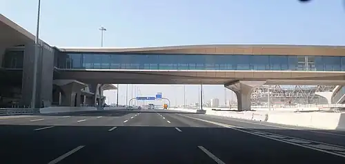 Doha Metro's Red Line runs through Lusail, providing its residents with convenient access to Doha and Al Wakrah.[76] Lusail station opened to the public on 10 December 2019 along with three other Red Line stations, over six months after the opening of the line's first 13 stations.[77] It is located on Al Khor Coastal Road (also known as Route Q1A) and is the northern terminus of the Red Line.[78] There is one metrolink, which is the Doha Metro's free feeder bus network, servicing the station:[79]
