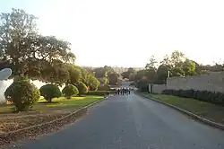 Faced with uprisings by Africans within their territory, as well as an economic decline and a desire to expand mining interests in northern Zambia's Copperbelt, the BSAC expedited the building of the northbound railway from South Africa into Northern Rhodesia from 1896.[20][21] Lusaka was founded in 1905 as a water stop on the route and was named after a Chief Lusaaka, the leader of a nearby Lenje village.[9] The section of line through Lusaka was built by the Mashonaland Railway Company, extending the line by 452 kilometres (281 mi) from Kalomo through to the mining town of Broken Hill (now Kabwe).[22][23] During the subsequent years, white Afrikaner farmers settled in the area, Lusaka becoming their regional centre and access point to the railway. By 1913, several stores and a hotel had opened, and they persuaded the BSAC to declare Lusaka as a recognised town and cede control of local affairs to them.[13][9] This early town was governed by the Lusaka Village Management Board, elected by the farmers, and consisted of a tract of land along the railway route, 5 kilometres (3 mi) in length and 1.5 kilometres (0.9 mi) wide.[13]