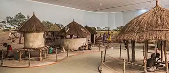 The earliest evidence of settlement in the area around what is now the Lusaka area dates to the 6th century. The first known village dates to around the 11th century, a settlement of round huts close to the modern suburb of Olympia. The subsequent centuries saw considerable fluctuation of people in the area, until the arrival of the Lenje and Soli peoples in the 17th or 18th century.[9] The Soli are believed by scholars to have arrived as part of the Luba migration along the Luapula River,[10] while the Lenje are related to the Ila–Tonga.[11] Modern Lusaka lies on the boundary of the territories of the two groups, with the Lenje inhabiting the region to the north of the city and the Soli to the south.[12] In the 19th century, African and European slave traders began arriving from the coastal regions of modern-day Tanzania, Mozambique and Angola, enslaving members of the Soli and Lenje communities for shipment to the Middle East, Europe and South America.[9][13] The need to evade these attacks as well as their use of a shifting-cultivation farming system, necessitated frequent relocation amongst the Soli and Lenje, and there were, therefore, no major permanent settlements.[13]