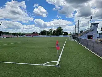 Lusitano Stadium, located in Ludlow, Massachusetts, is a 3,000-seat stadium built in 1918 currently used for soccer. Currently its tenants are the Western Mass Pioneers of the USL League Two, the New England Mutiny of United Women's Soccer and the Western United Pioneers premier youth club
