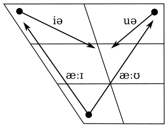 - The starting points of /æːɪ̯, æːʊ̯/, /ɑɪ̯, ɑʊ̯/ as well as /i̯ə/ and /u̯ə/ are similar to the corresponding short monophthongs [æ, ɑ, i, u].[11]