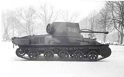 Due to the Swedish Air Force's inability to maintain air superiority in a potential conflict against a more powerful foe and the reorganization of the armored brigades of Sweden in 1942, the need arose within the Swedish Army for a vehicle that could protect movements of armored vehicles from air attack.[1] An order was subsequently given to AB Landsverk to create 42 Gun Carriages mounting a 20mm anti-aircraft gun, however due to a variety of issues no prototype was ever delivered.[1]