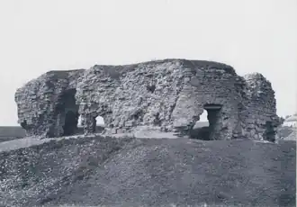 There was a castle in the village, which was repeatedly attacked during Tartar incursions into the Polish lands.[2] The structure was still inhabited in the early 19th century. At the end of the 19th century, remnants of the castle's walls were visible next to the Roman Catholic Church, which, together with the parish priest's rectory, was built from the demolished walls of the castle.[3] Small fragments of the stone fortifications remain today. They have been rebuilt into an open chapel.[2][1]