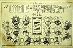 The team was sponsored by Lygie, an Italian bicycle manufacturer.