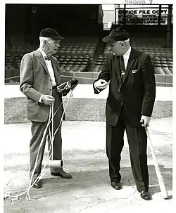 Briggs' love for baseball triggered another piece of research. During World War II, the government mandated that the rubber in baseballs be replaced by cork. Complaints about the new balls led Briggs to test them, and in 1945, he demonstrated that the new baseballs were inferior. This was done by addressing the issue of whether or not a pitched baseball could curve out of the plane of the pitch. With the help of two pitchers from the Washington Senators baseball club and his 1917 wind tunnel, he studied the effect of spin and speed on the trajectory and established the relationship between the amount of spin and the curvature of the ball (see curveball). To measure the spin, he attached a lightweight tape to the ball and counted the twists in the tape. This popular newspaper topic is probably the most widely known of his research results.