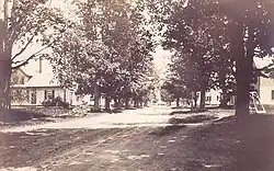 The scenic town common is surrounded with houses and public buildings dating from the late 1700s to the early 1900s. Stagecoaches traveling the old "Boston Turnpike" from Montreal in the 1830s passed through Lyme, stopping at the Lyme Inn, built in 1809 and recently renovated.[3]: 96 Next door to the inn is the 200-year-old Congregational church. Its original 1815 steeple bell[3]: 309 was cast by Paul Revere. It was later replaced with a bell cast by Henry N. Cooper & Co., Boston. A hand-wound clock mechanism from E. Howard & Co. strikes the hour. Behind the church is a row of horse sheds dating from 1810.[3]: 195 The row of 27 sheds standing today is the longest line of contiguous horse sheds in New England, and possibly in the United States.[4] Originally each shed had the name of the owner on a sign above the door. The signs are still there, though not necessarily over the original shed.