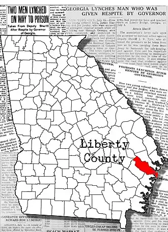 | Participants | A white mob of 50 people lynched in Liberty County, Georgia |