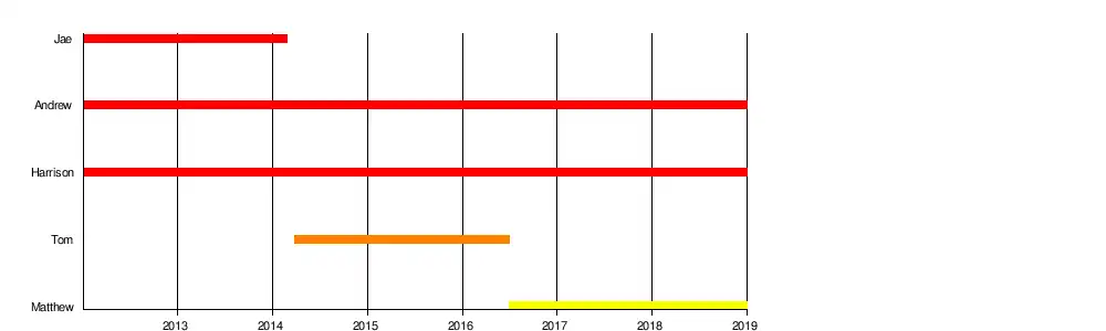 On 24 February 2014, Curtis announced via his YouTube channel that he was leaving the band.[7] Following this news, on 26 March 2014 the band announced local Adelaide solo act Tom Jay Williams would be joining in Jae's place.[8] Williams was formerly a contestant on Australian Idol in 2008.[9] He was the youngest ever top ten finalist during an Australian Idol series.