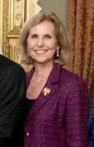 Young joined the Daughters of the American Revolution in the 1980s and has served many roles, from Regent of the Tejas Chapter to President General. Elected PG in 2013, she was the first DAR member from Texas to hold the office.[5][6] The symbol of her administration was the "majestic eagle." Her administration's theme was “Honoring Our Heritage—Focusing on the Future—Celebrating America!,” commonly shortened to "Celebrate America!," and focused the DAR's role as a service organization. She encouraged Chapters and Members to celebrate the 125th anniversary of the NSDAR in 2015 and participate in the new Celebrate America! Committee, which focused on meaningful public service.[7] She asked members to log one million service hours and ultimately 14 million hours were logged. Her term coincided with the 125th anniversary of the DAR in 2015.[5]