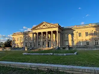 Lynnewood Hall is a 110-room Neoclassical Revival mansion in Elkins Park, Pennsylvania. It was designed by architect Horace Trumbauer for industrialist Peter A. B. Widener and built between 1897 and 1899. Lynnewood Hall is the second largest surviving Gilded Age mansion in the United States and once housed one of the most significant art collections in American history, amassed by Peter and his son Joseph E. Widener and donated to the National Gallery of Art in 1942.