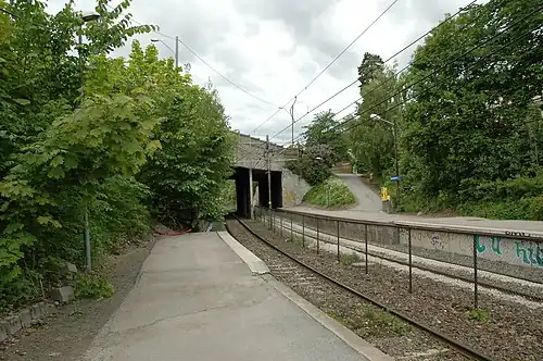 Lysakerelven is a former station in western Oslo on the Kolsås Line of the Oslo T-bane network, between the stations of Bjørnsletta and Jar, 8.4 kilometers (5.2 mi) from Stortinget. It was the last station within Oslo's boundaries before the line continues into Bærum; taking its name from the river Lysakerelven which is the boundary between Oslo and Bærum.
