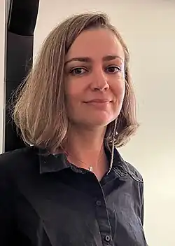 Lyuba Yakimchuk, also known as Lyubov Yakymchuk (Ukrainian: Любов Якимчук; born 1985),[1] is a Ukrainian poet, playwright, and screenwriter, living in Kyiv, Ukraine. Her work includes Apricots of Donbas (2015).