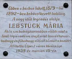 On 15 March 1935, a memorial plaquet was placed on the house of 4 Ujpest Csokonai. In 1942, she was dramatized in an operetta by Jenő Huszka and László Szilágyi.