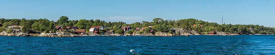 The nature of the Möja Archipelago reflects its location on the edge to the peripheral archipelago region. While traces of early human activities are plentiful, some areas are untouched barren cliffs and marshy grounds.[1] Möja is today a popular tourist destination visited year around by the steamship company Waxholmsbolaget as well as by private boaters touring the greater Stockholm archipelago.