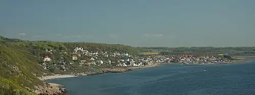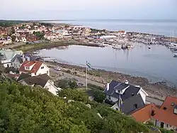It is best known for its scenic harbour and its location adjacent to the Kullaberg Nature Reserve. Its harbour, situated on the Kattegat Strait, provides services for marine fishing, watersports outings and tour excursions along the coast, especially the rocky shore of Kullaberg to the north. Fodor characterizes Mölle as "a small town set in spectacular isolation on the dramatic headland of the Kulla Peninsula".[2]