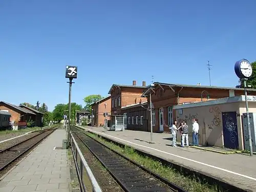The station has two tracks, but only track 1 is used by passenger traffic since the crossing loop in Ratzeburg has been reactivated and trains now cross there. Freight traffic only occasionally uses the line.