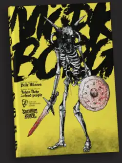 Mörk Borg is a fantasy role-playing game set on a harsh world where the upcoming fulfillment of seven prophecies will bring the world to an end. RPG historian Stu Horvath described the central theme of the game as "what player characters do in the last days —— speed them up, work to stop them, or just try to get rich and enjoy themselves before the lights go out."[1] The end of days is so close that players do not have to bother to name their characters.[1] To add to the general darkness of the game, the world is one of corruption, horror and nihilism. As critic Sara Elsam noted, the game involves "valleys riddled with undead, gothic cathedrals and a cursed forest ... cannibal warlocks, poison peddlers from beyond the void and hungry gut worms."[2]