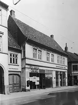 The building was built on a farm owned by the nobleman Falk Gøye (1602–1653). Dating to 1646, the two storey building's exterior features carved rosettes. For several years, various noble families lived on the farm. In the middle of the 18th century the farm was transformed into a grocery store and a storage room. In 1860, the lower floor of the front porch was furnished for shops and several families moved into apartments above. [2]