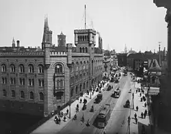 Mühlendamm (Mill Dam) is a major thoroughfare in the central Mitte district of Berlin, Germany. It runs from the historic Cölln and Fischerinsel quarters to the Molkenmarkt square of Alt-Berlin via the Mühlendammbrücke (Mill Dam Bridge) crossing the Spree river. Named after several watermills at the site, a historic causeway was first laid out at this location about 1200 and became the nucleus of the late medieval city foundation. The current prestressed concrete bridge was built in 1968. It is part of an east–west road link to Berlin's city centre and the Bundesstraße 1 highway.