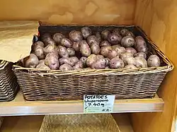 Māori have grown potatoes for at least 200 years, and "taewa"[3] refers collectively to some traditional varieties, including Karuparerā, Huakaroro, Raupī, Moemoe, and Tūtae-kurī.[2][4] These are smaller, knobblier, and more colourful than modern potato varieties, which are referred to by the loanword pārete.[5] Other collective names for traditional Māori potatoes are rīwai, parareka and mahetau.[6]