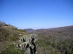 Porcupine Mountains State Park was established in 1944 to protect the last large stand of old-growth forest remaining in Michigan.[7][8] Then in 1972, Michigan passed the Wilderness and Natural areas Act. This act gave the park the new designation of the Porcupine Mountains Wilderness State Park. The facilities provided by the park include an extensive network of backcountry trails for hiking and backpacking, rustic trailside cabins, modern campgrounds, swimming and boating areas, and various interpretive programs led by park rangers. The North Country Trail passes through the park. In the winter, a ski area also operates within the park.[9] Because of the copper mining history of the park, it is a cooperating unit of Keweenaw National Historical Park.[10]