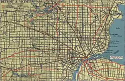 - ^ Michigan State Highway Department & Rand McNally (December 1, 1939). Official Michigan Highway Map (Map) (Winter ed.). Scale not given. Lansing: Michigan State Highway Department. Detroit & Vicinity inset. OCLC 12701143. Retrieved October 17, 2019 – via Michigan History Center.