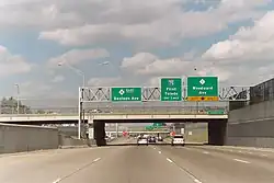 In 2001, M-8 was extended to include the two-mile (3.2 km) segment of Davison Avenue between the freeway's western terminus and Davison Avenue's junction with I-96 (Jeffries Freeway).[14][15] Except for a M-8 shield on the Lodge Freeway's Davison Avenue exit signs, the non-freeway portion of M-8 remains unsigned, including at the Davison Avenue exit from the Jeffries[16] where new Clearview signs were erected as part of a large I-96 reconstruction project in 2005.[17]