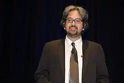 ![]() M. Madan Babu speaking at the Intelligent Systems for Molecular Biology (ISMB) conference in Chicago in 2018 | |