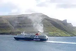 On 11 September 2010 Regina Baltica arrived in Vágur, Faroe Islands. She was chartered to Strandfaraskip Landsins for four weeks from 17 September onwards for use on the service linking Tórshavn to Tvøroyri in Suðuroy while the regular ferry on the route – the Smyril – undergoes a docking in Denmark.[5] The first journey was from Vágur in Suðuroy, but the rest of the time Regina Baltica was embarking and disembarking from Krambatangi ferry port near Tvøroyri. The schedule had to be changed, because it takes longer time to embark with Regina Baltica, therefore the ferry can't sail 3 times daily from Tórshavn three times weekly like Smyril did, but two times daily every day.[6] [7] Smyril came back again on 15 October 2010, and went back on its route on the same day. Regina Baltica sailed for the last time from Tórshavn at 13:00 to Vágur. Smyril left from Krambatangi ferry port at 15:30 according to the planned schedule.[8] Regina Baltica was lying at the port of Vágur for 6 days. The ferry left Vágur on 21 October 2010.[9]