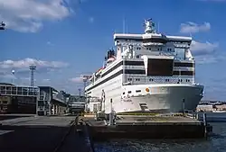 Originally to be named Skandia,[1] Finlandia was the first large, modern cruiseferry to be built for Silja Line. At the time she was also the world's largest cruiseferry in terms of passenger capacity, beds and volume. Alongside her sister MS Silvia Regina (and Viking Line's contemporary Viking Saga and Viking Song) she was instrumental in changing the Helsinki-Stockholm route from a transportation service into a cruise route.