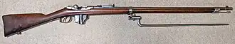 It was one of the first military arms adopted by a European power using a metallic cartridge. The bolt of the rifle used a split bolt design similar to the French Chassepot, and used a unique leaf mainspring inside the two-piece bolt handle—which was later used by the Murata Type 13 and Type 18 rifles in Japan.[3]