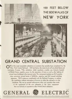 19. ^ "Huge Power Plant 100 Feet Under City – Biggest Substation in World Moved Into Bedrock Under Grand Central Terminal – Service Never Cut Off – $3,000,000 System Ran Trains While Being Moved to Make Way for New Waldorf". The New York Times. February 16, 1930. ISSN 0362-4331. Retrieved December 16, 2020.