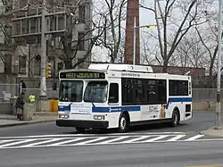 Between 1997 and 2004, the bus route had an increase in ridership of 237%,[20] leading to a decrease in trip headways from 20 minutes[10] to 15 minutes in 1998,[21] and under 10 minutes by the 2000s.[13] On October 12, 2009, the first luggage rack-equipped bus in the city debuted on the M60, as part of a ten-bus pilot program on airport bus services to improve passenger flow.[22][23][24] In August 2011, two 60-foot (18 m) articulated buses started running per day on the M60, before permanent conversion to replace the 40-foot (12 m) buses on the route by September 2012.[25][26]