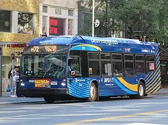 ![]() A 2021 Nova Bus LFS HEV (9683) on the Upper East Side-bound M72 along 72nd Street | |||