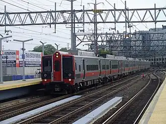 The M8 is an electric multiple unit railroad car built by Kawasaki for use on the Metro-North Railroad New Haven Line and the CT Rail Shore Line East. The fleet of 471 cars first entered service in 2011, replacing the M2, M4 and M6 cars, which entered service in 1973, 1987 and 1994, respectively.[9] An additional 60-car order is currently finishing delivery in response to increased ridership and usage on Shore Line East.[10][11]