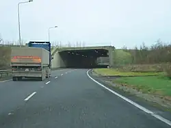 Construction of 28 km of motorway linking the Kilcullen bypass with the Carlow bypass began in February 2008. This section was completed and opened on 21 December 2009.[1] It runs between Junctions 2 and 4 on the M9 corridor.