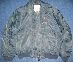 The MA-2 bomber jacket (also known as the MA-2 flight jacket or CWU-45 flight jacket) is an advanced version derived of the original MA-1 bomber jacket that was originally designed for the American military during the 1950s. CWU stands for "Cold Weather Uniform."[1] The MA-2 is still being issued and used by the United States Navy and United States Air Force.[2]