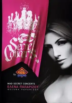 Mad Secret Concerts: Helena Paparizou is the second DVD video release by Greek pop singer, Helena Paparizou. It was recorded on December 13, 2005 as part of the television specials MAD Secret Concerts by MAD TV at the Iera Odos club, in Athens, Greece, and released on July 22, 2006 in Greece and Cyprus by Sony BMG Greece. [1]