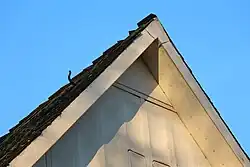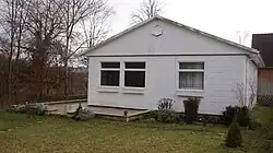 The architectural design resembled conventional stone buildings: The perforated facade with a gable roof and mullioned windows with shutters were "quite plain, but cosy and with all objectivity something for the German mind" as required in the specification by the architect Hans Schneider on behalf of MAN in 1949.[3] The basic type could be ordered according to the catalogue with different roof pitches. The inner walls could be built individually, since the roof was supported by the outer walls. The version with the steeper roof provided space for a habitable attic.[4]