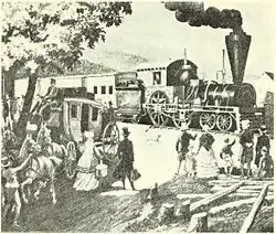 Eight intercity mainlines radiating from Boston opened between 1834 and 1855: the Boston and Worcester Railroad (B&W) in 1834–35, Boston and Providence Railroad (B&P) in 1834–35, Boston and Lowell Railroad (B&L) in 1835, Eastern Railroad in 1838–1840, Fitchburg Railroad in 1843–45, Boston and Maine Railroad (B&M) in 1845, Old Colony Railroad and Fall River Railroad in 1845–46, and Norfolk County Railroad in 1849–55. Commuter rail service allowing suburban residents to work in Boston began with the B&W in 1834; by the 1860s, commuting was possible on the eight mainlines and a number of branch lines.[28]: 8 Mergers prior to the 1880s were primarily acquisitions of branch lines and consolidations with connecting lines: the B&A merged with the Western Railroad in 1874 to become the Boston and Albany Railroad (B&A), the Fall River Railroad and several other lines merged into the Old Colony Railroad, and the Norfolk County Railroad eventually became part of the New York and New England Railroad (NY&NE). The narrow gauge Boston, Revere Beach and Lynn Railroad (BRB&L) opened in 1875, competing with the inner portion of the Eastern Railroad. Unlike the other lines, it never built rails into downtown Boston, and instead relied on a ferry connection from East Boston.[29]: 12