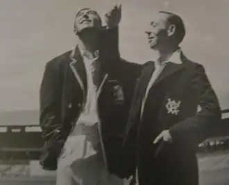 Denis Compton and Lindsay Hassett tossing the coin