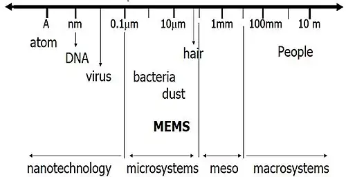 - If its feature size is between 0.1 μm and hundreds of micrometers. (below this range, it becomes a nano device and above the range, it is considered a mesosystem)